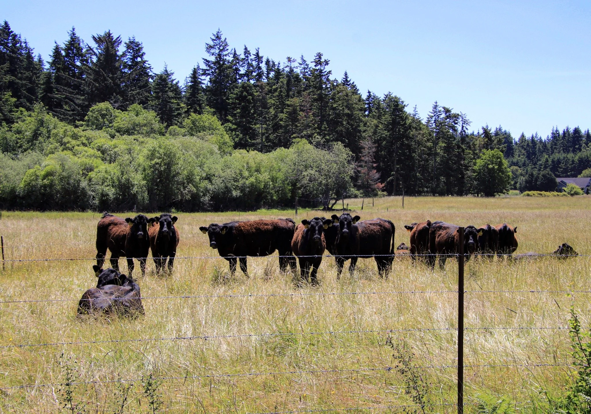 Coupeville, WA, the 3 Sisters Family focuses on their all natural grass fed beef, all natural pork, grass fed lamb, all natural chicken & chicken eggs. On the way to their renown market you can often find their Angus grazing, shown above.